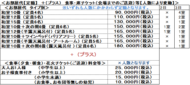 本年は当館のスポンサー様からのご予約もあり、8月2日の部屋数が少なくなっております。